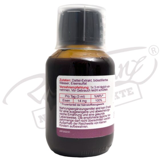 Zutaten: Dattel – Extrakt, bidestilliertes Wasser, Eisensulfat