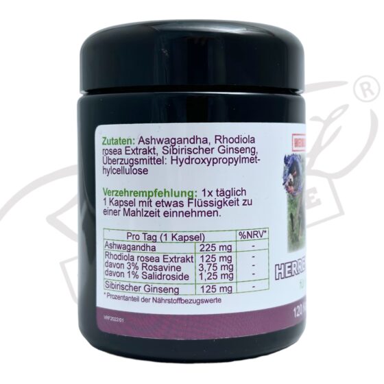 Zutaten: Ashwagandha, Rhodiola rosea Extrakt, Sibirischer Ginseng,