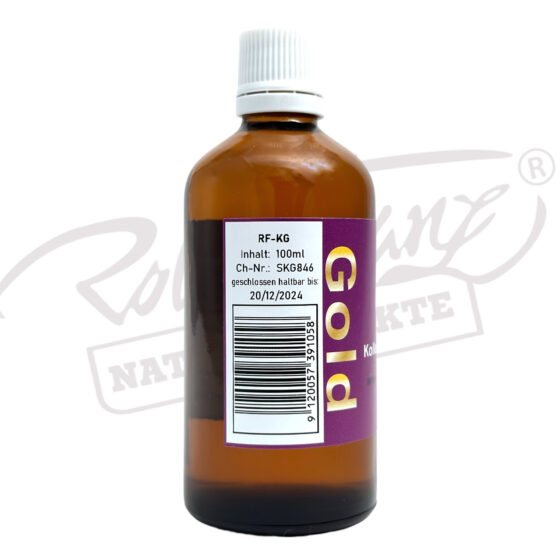 | Inhaltsstoffe: | Quellwasser, entminieralisiert und energetisch aufbereitet, Feingold reinst. |