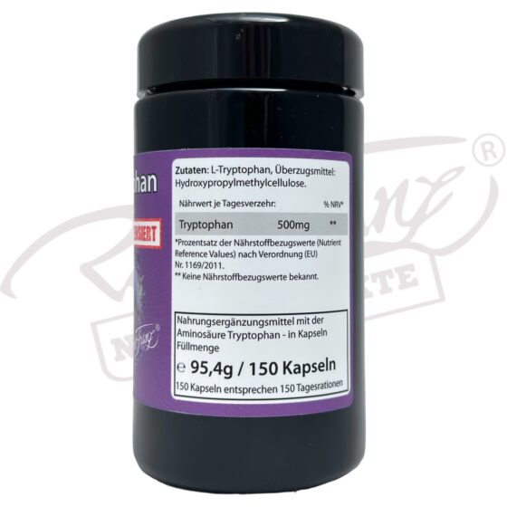 Inhaltsstoffe:Â Pro Kapsel sind 500mg Tryptophan enthalten.