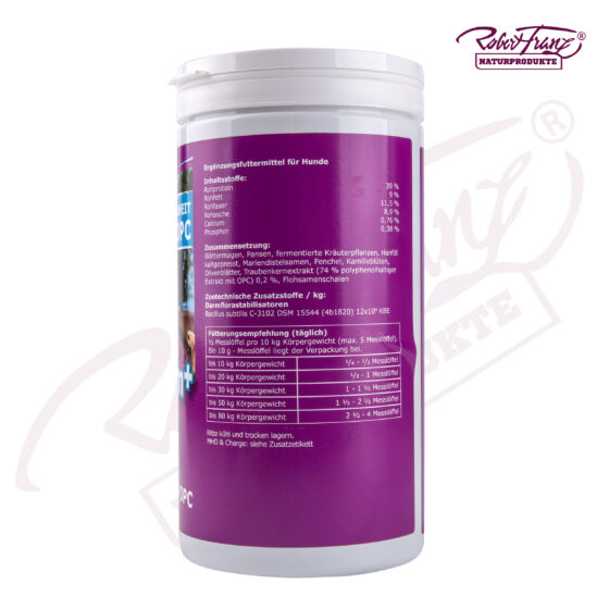 Blättermagen, Pansen, fermentierte Kräuterpflanzen, Hanföl kaltgepresst, Mariendistelsamen,