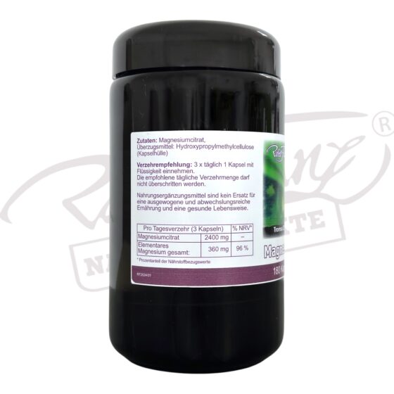 Zutaten: Magnesiumcitrat, Hydroxyproylmethylcellulose (Kapselhülle)