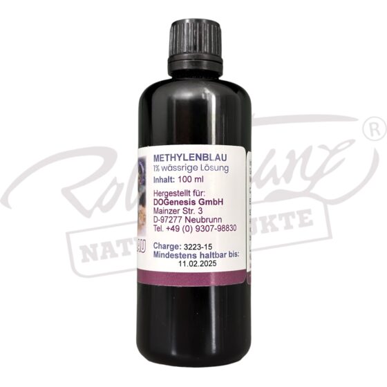| Inhaltsstoffe | Gereinigtes Wasser 99%, Methylenblau 1% |
