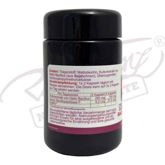 Zutaten: Maltodextrin, Kulturextrakt von Natto Bacillus, Kapselhülle (Hydroxypropylmethylcellulose)