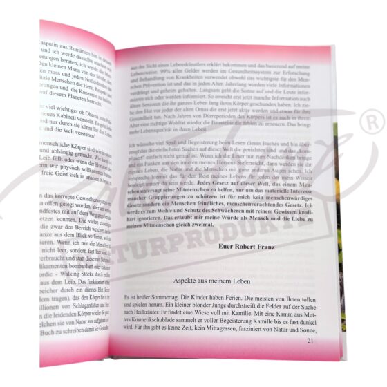 Robert Franz kämpft deshalb auch in seinem Buch dafür, dass die Therapie mit Naturheilmitteln und Heilpflanzen nicht nur als „Nahrungsergänzung“, sondern als echte und preiswerte Alternative zur modernen Medizin gewertet wird.