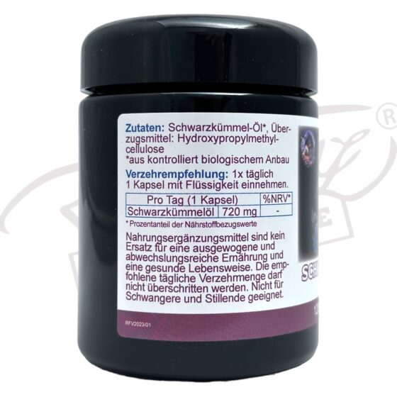 Inhaltsstoffe: Schwarzkümmel-Öl 720mg -%NRV*