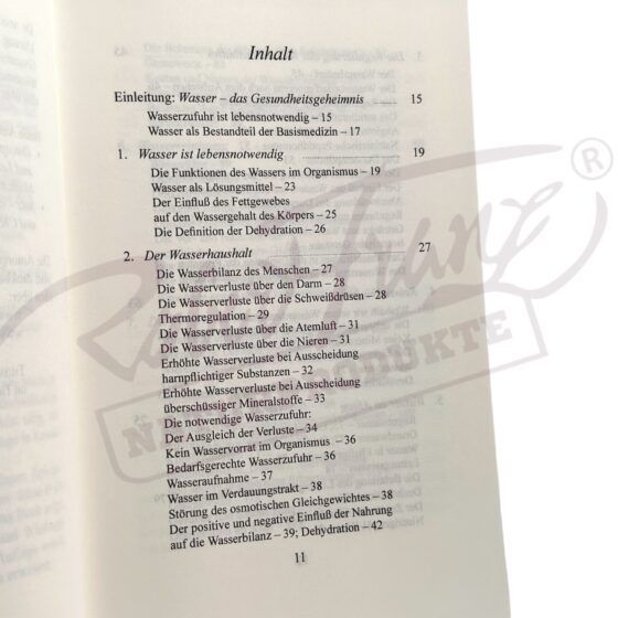 Viele Menschen leiden ständig unter Wassermangel, ohne sich dessen bewußt zu sein. Ein Grund dafür ist die Unterdrückung des Durstgefühls durch salzhaltige Kost. Wassermangel verschlechtert Stimmung, Kurzzeitgedächtnis und Konzentration, macht müde, geht zu Lasten des Wohlbefindens und vermindert die körperliche Leistung. Wassermangel schwächt das Immunsystem, verstärkt Allergien und fördert die Bildung von Harnsteinen, schädigt langfristig die Nieren (bis zum Nierenversagen im Alter) und fördert Augenerkrankungen (z. B. Eintrübung der Augenlinsen, Makula-Degeneration und Glaukom). Wassermangel kann sogar Insulinresistenz, Diabetes und Übergewicht begünstigen, ebenso Krebs, Bluthochdruck und Arteriosklerose, was mit einem erhöhten Demenz- und Infarktrisiko verbunden ist. Wer auch im Alter gesund und leistungsfähig bleiben möchte, muß jederzeit gut mit Wasser versorgt sein. Ideal dafür ist das Trinken reinen Wassers.